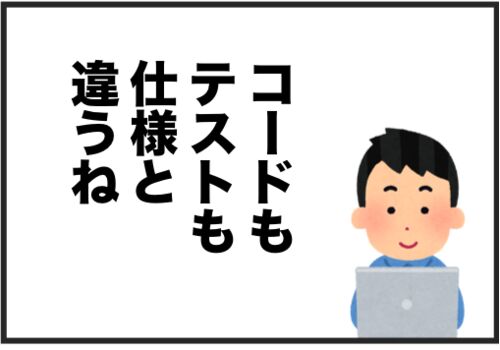 ソフトウェアのテストを書くのが嫌になる瞬間、今回は第3位です。 テストを書くのが嫌になる瞬間 第3位 : コードもテストも間違っているのをみたとき 今回は7コマ漫画2本でお送りします。 なお、以下単に”テスト”と書いた場合は、テストコードのことを指し、…